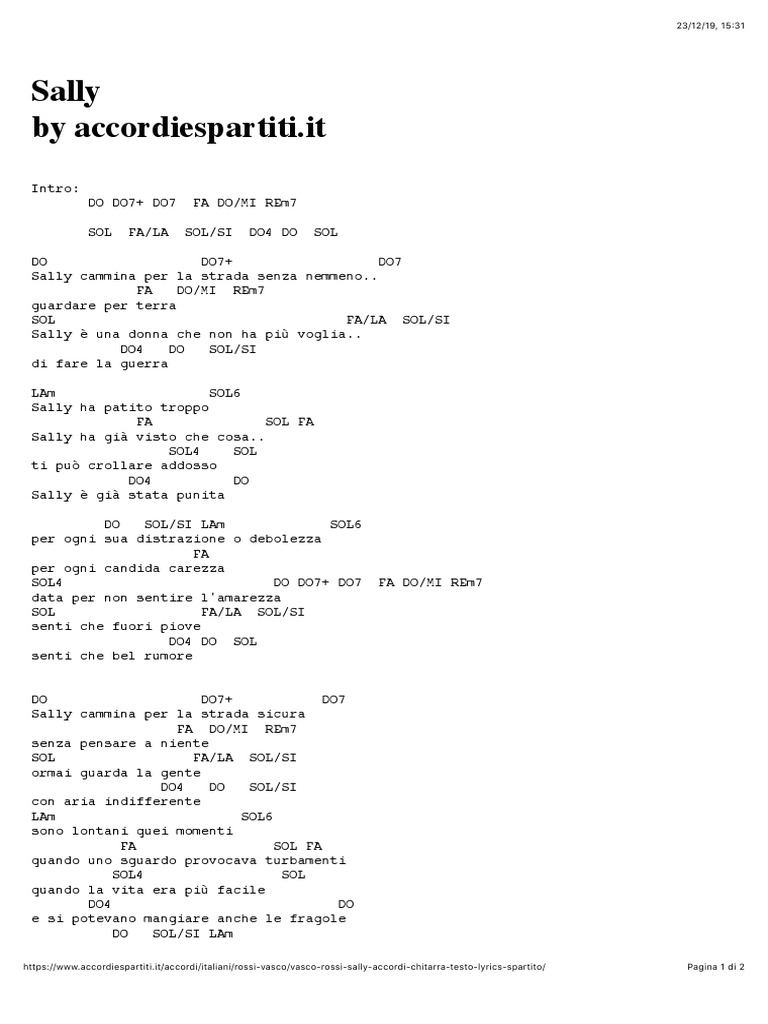 Sally Vasco Rossi Testo E Accordi Per Chitarra from www.la-chitarra.it Lezioni e consigli per chitarristi. Tutta la musica di vasco su. Original lyrics of sally song by vasco rossi. Non tutti hanno capito che, quando vasco scrive una canzone autobiografica, si nasconde sempre dentro un alter ego femminile. Traduzioni delle canzoni, accordi per. D d7+ d7 sally cammina per la strada senza nemmeno… g bm em7 guardare per terra a g* a* sally è una donna che non ha più voglia… Sally watching new sally in movies by allesiathehedge on deviantart. Deviantart is the world's largest online social community for artists and art enthusiasts, allowing people to connect through the.
