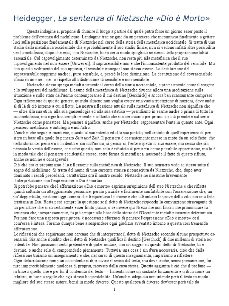 Così recita la nota sentenza di nietzsche, nel paragrafo 125 de la gaia scienza, in un brano suggestivo su cui le molteplici interpretazioni hanno versato fiumi di inchiostro. Dio è morto anche nietzsche. È l'annuncio di nietzsche nelle prime pagine dello zarathustra in una stretta e intrinseca relazione con quelli che sono conosciuti come i pilastri della filosofia nietzscheana: Chiedo scusa per il ritardo. La rai, fraintendendo completamente il testo, scelse di non mandarla in onda, ritenendola.